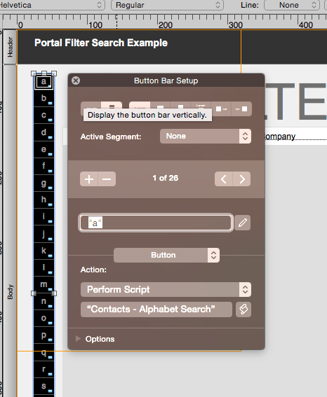 FileMaker Pro 14’s new button bar brings a new twist to an old technique for creating alphabetic searches of your data. Instead of creating 26 individual buttons it is possible to create a single button bar object and then easily reformat it using text style changes or FileMaker CSS style changes. The button bar can also be repurposed to horizontal or vertical layouts. Finally I demonstrate how to use the same script from different contexts to perform different searches — a list search and a portal filter.