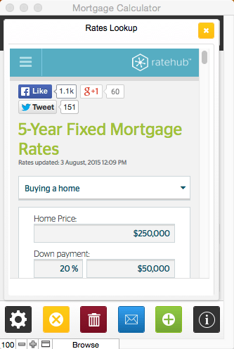 - Automatically get mortgage rates – semi manual process, click on a linked web page to find the latest rates.
