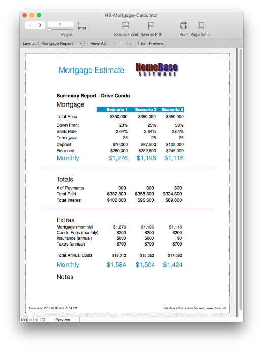 - Keep multiple versions of your mortgage estimates. Store as many records as you like, with three scenarios per record.