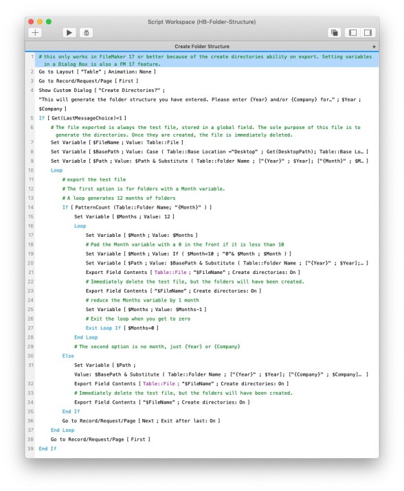 Two FileMaker 17 features are required for this script. The most important is the Export Field Contents – Create Directories option turned on.