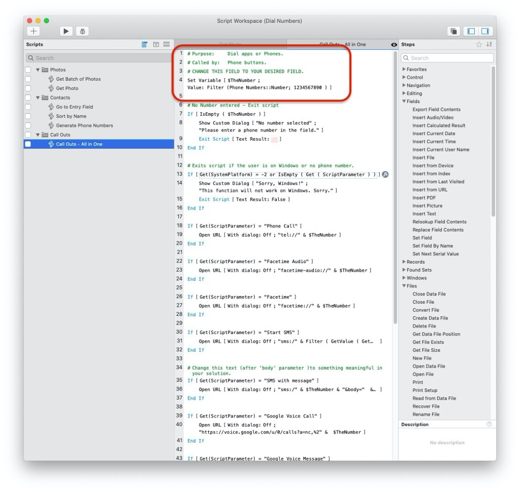 This free demo file is based on a file by Calvin Mosiman, featured by Richard Carlson. I recommend watching their Youtube video to get a full idea of what is going on in the scripts. For my purposes, I gathered all the scripts from his demo file into a single one and made it a little more modular so I could quickly paste it into my databases. To add it to your solution, copy the single script, and the Popover button and then edit the script to your preferred phone number field. I thought I’d share my version.