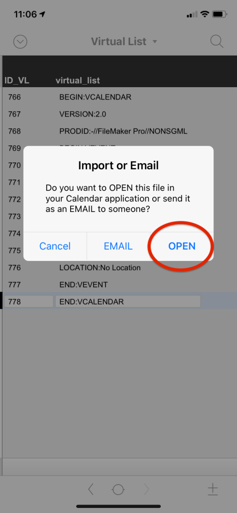 “You created the export to .ics for Filemaker so long ago, but I am just coming a cross it now for a solution I am building and it works exactly as I wanted it to except in Filemaker Go! In Go, it is creating the file, and opening it but I don’t have the ability to add to the calendar —