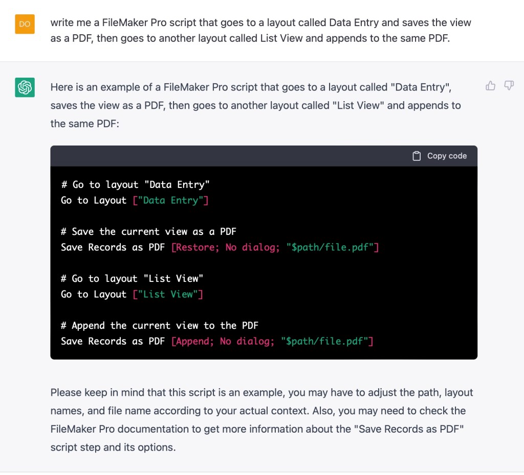 P.S. Oh, oh! As regular readers of this blog know, I’ve often written about FileMaker Pro development. I just tried this AI with some FileMaker scripts. This might be a serious problem.