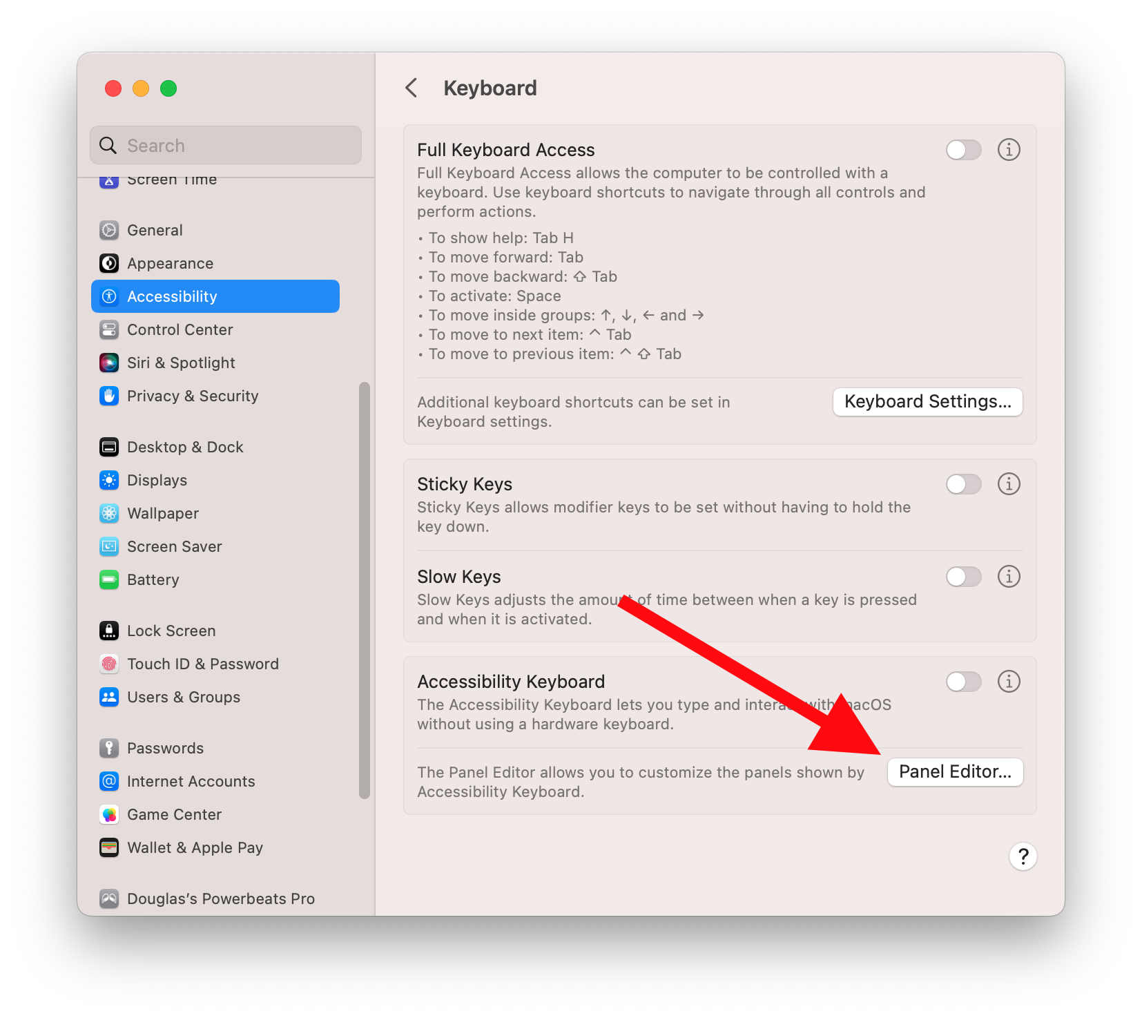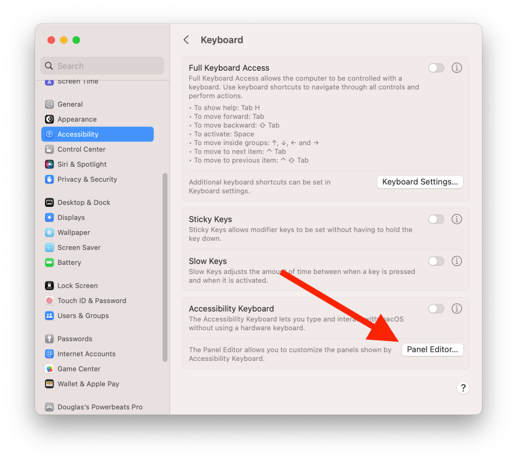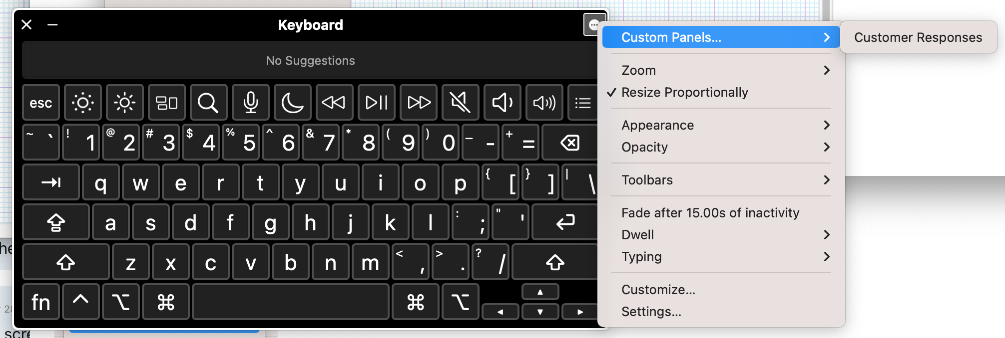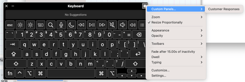 To create a custom panel, click on the “Panel Editor…” button at the bottom of the Accessibility Keyboard window. This will open a new window where you can drag and drop buttons to create your custom panel. To add a new button, click on the “+” button and choose the type of action you want the button to perform. For example, you could choose “Type Key” to have the button type a specific key on the keyboard, or “Run Script” to execute a script or command.
