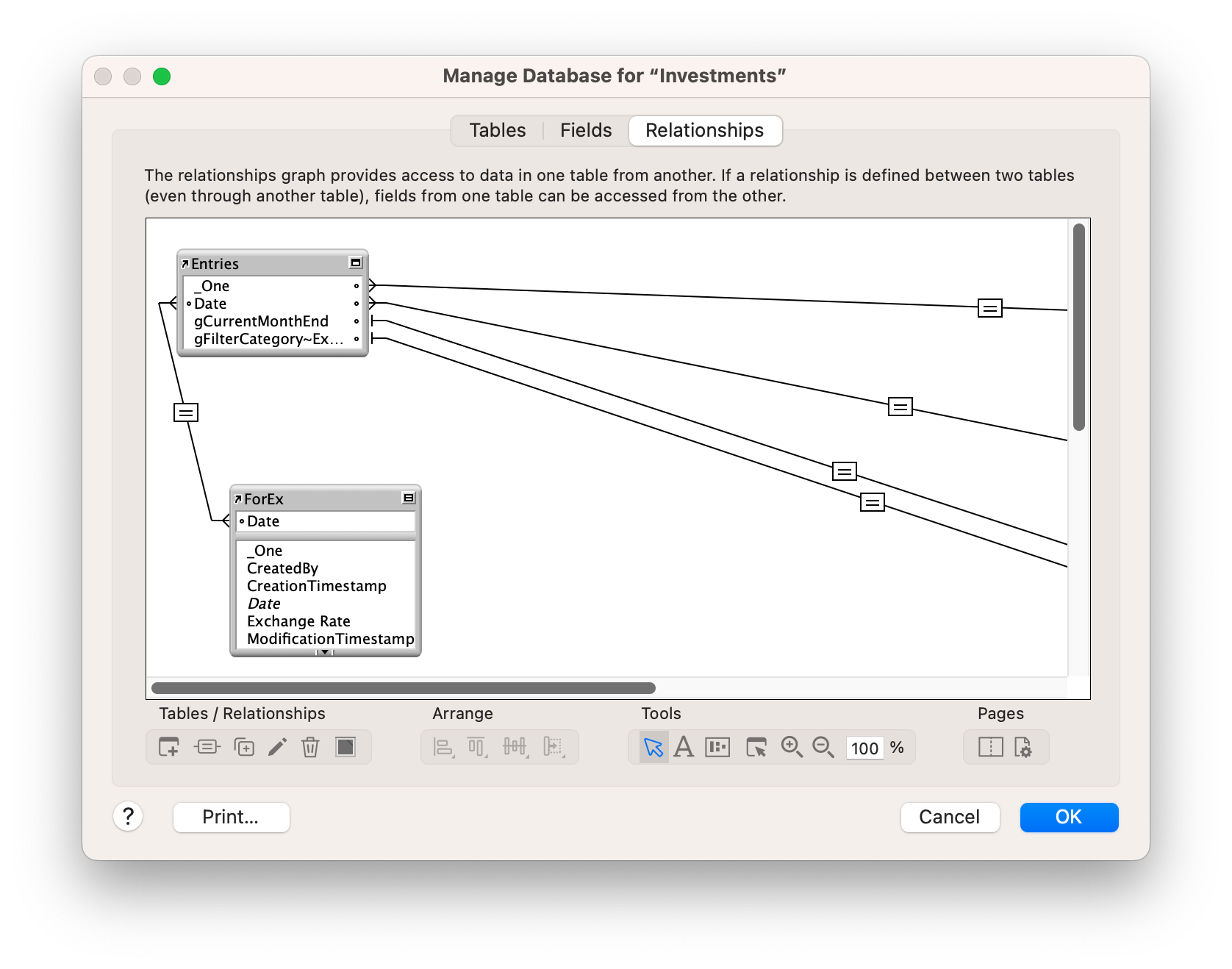 - A separate data table in your solution for Date and Exchange Rate. I have a simple relationship between the date in my Entries table and a table called ForEx, linked by Date.
