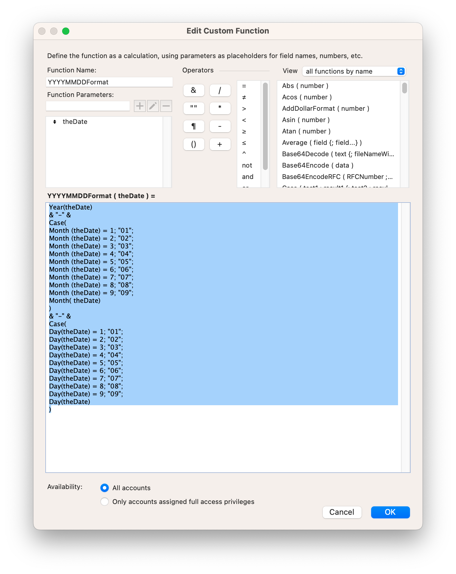 - This Custom Function to put the FileMaker date into the preferred format for Open Exchange Rates. There are probably more elegant ways to do this, but I have been using this one for years.