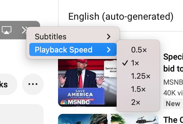 You can toggle through these different video playback speeds by using the Shift < and Shift > key combinations:
